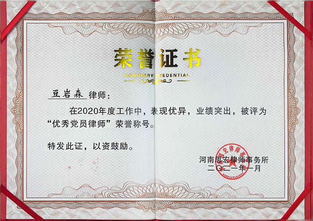 2021年洛阳市律师行业委员会、洛阳市律师协会党史学习 知识竞赛“优秀个人” |